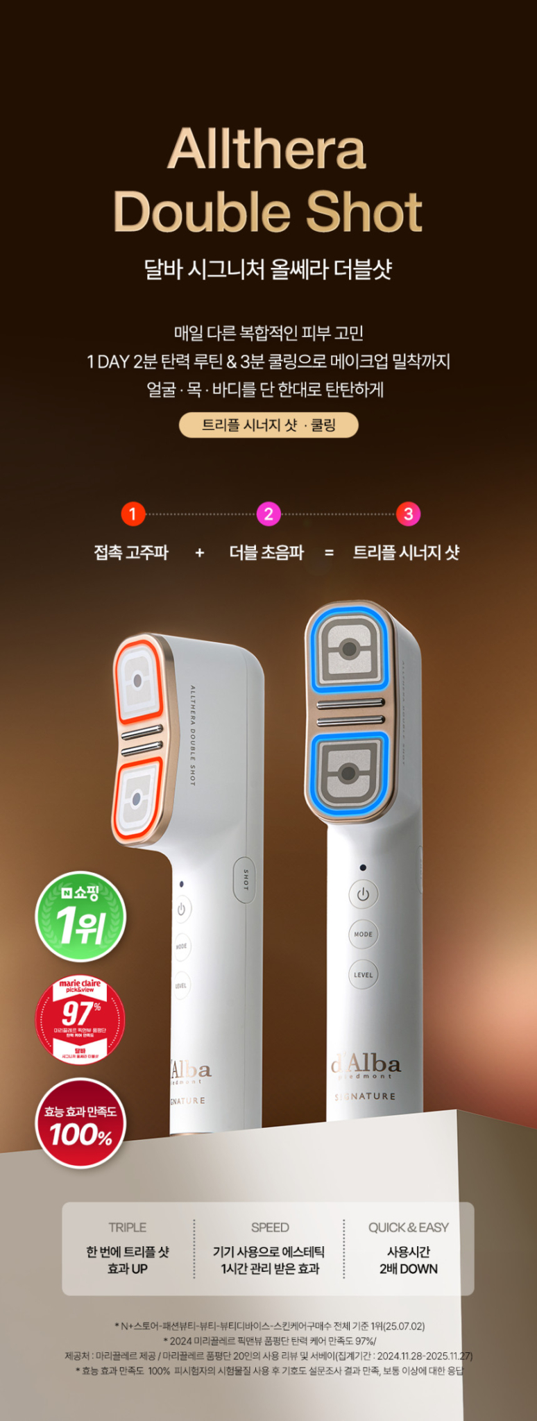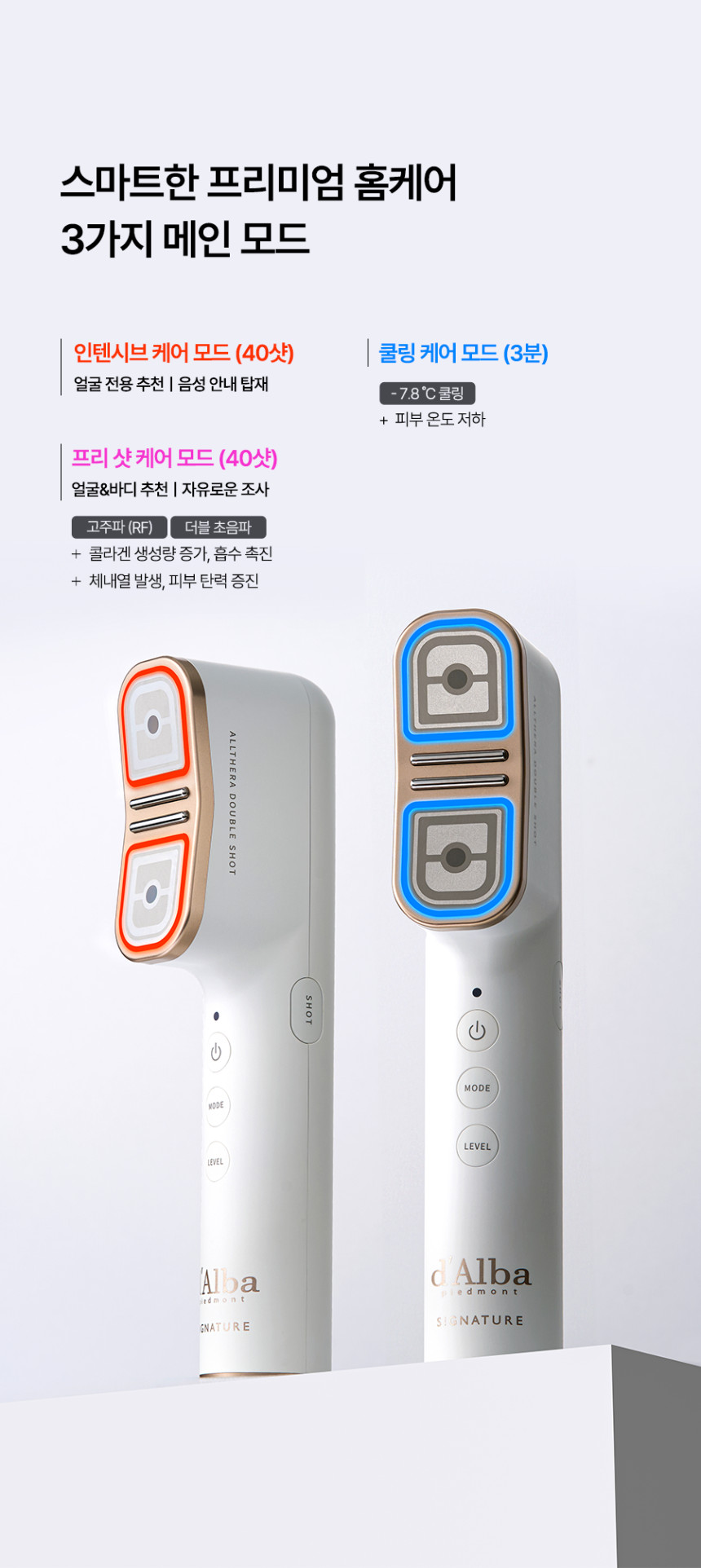 d’Alba Signature Allthera Double Shot is Korea’s first premium home beauty device featuring RF (Radio Frequency), Double Ultrasound, and Cooling Care in one device. This innovative multi-function device delivers professional-grade skin treatment at home with just 2 minutes of daily use.