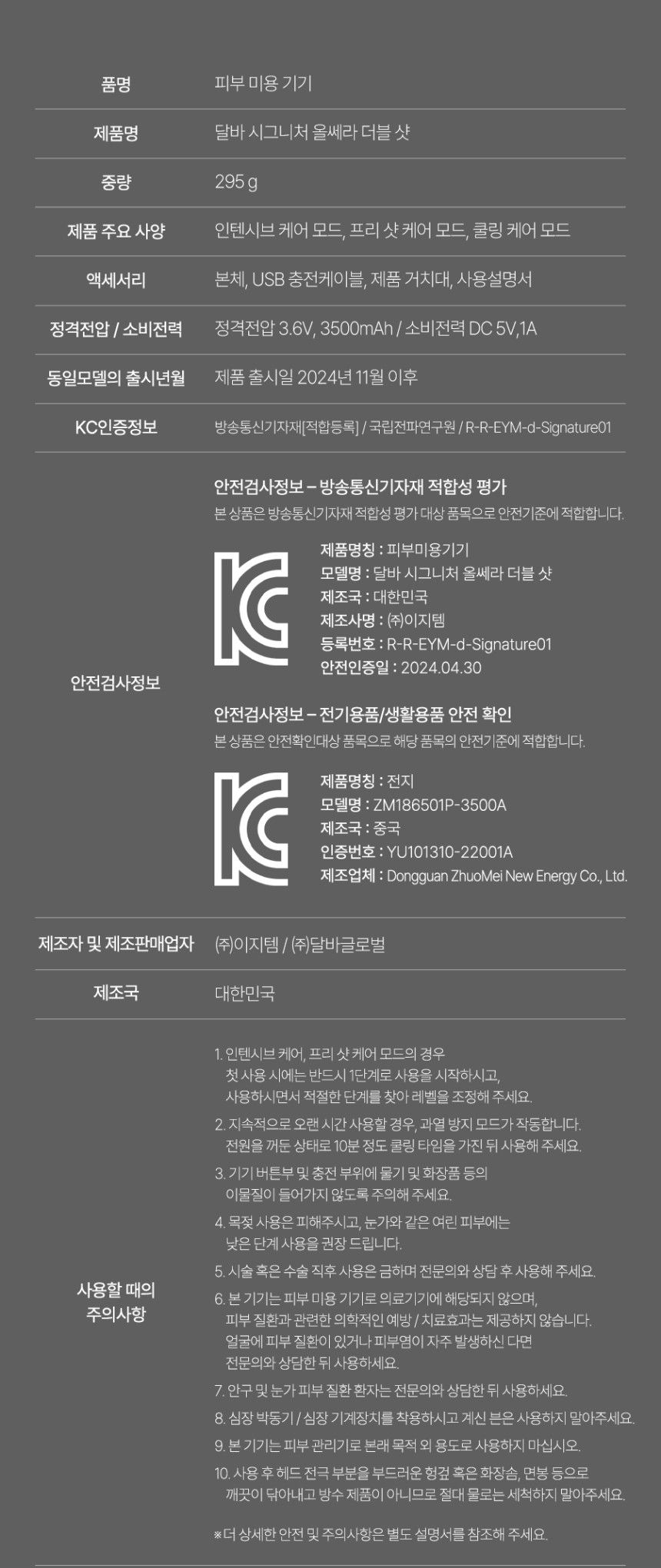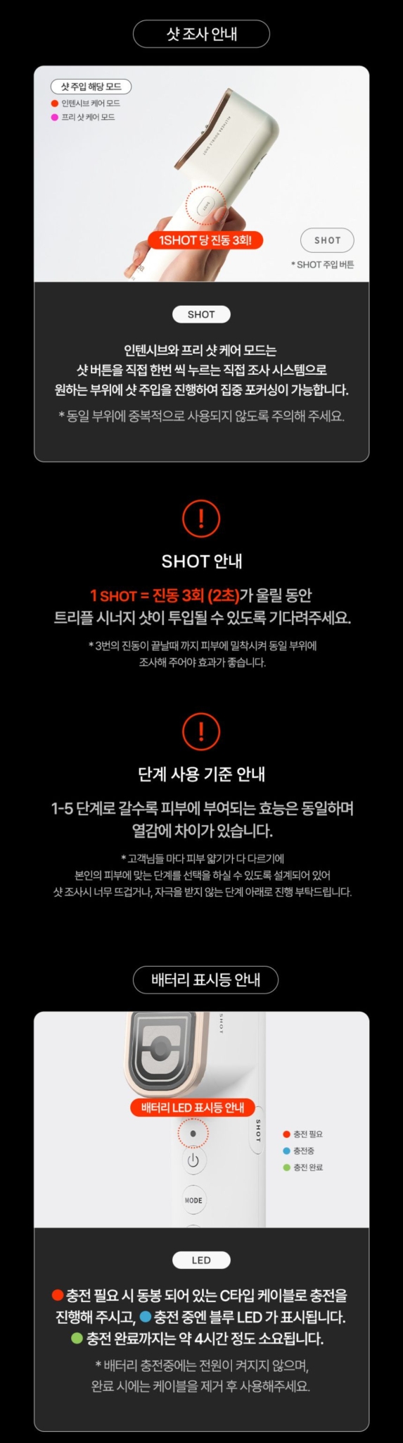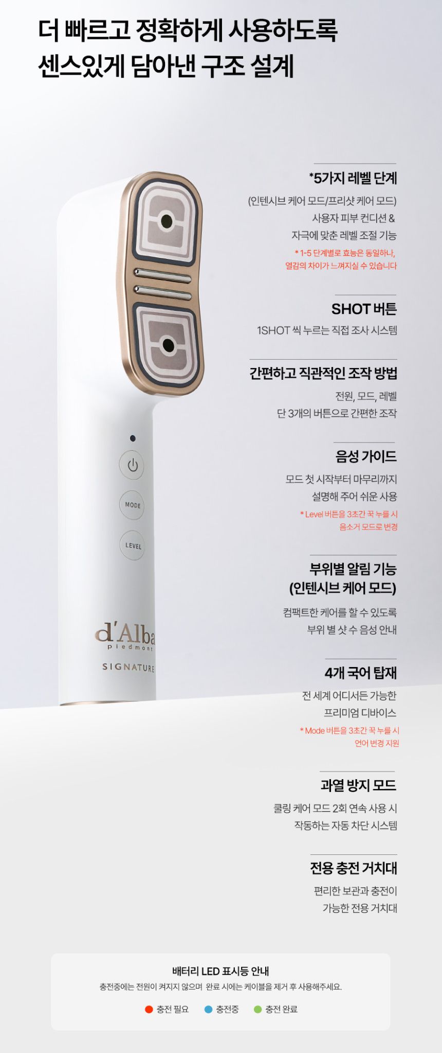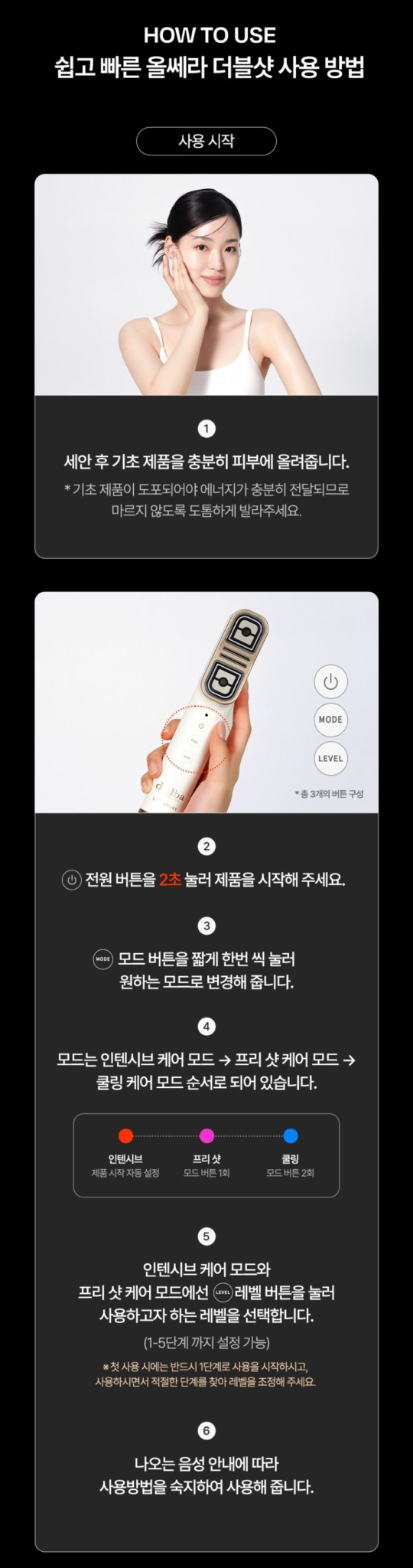 - Pre-Shot Mode: Purple LED light therapy for enhanced product absorption and skin texture refinement