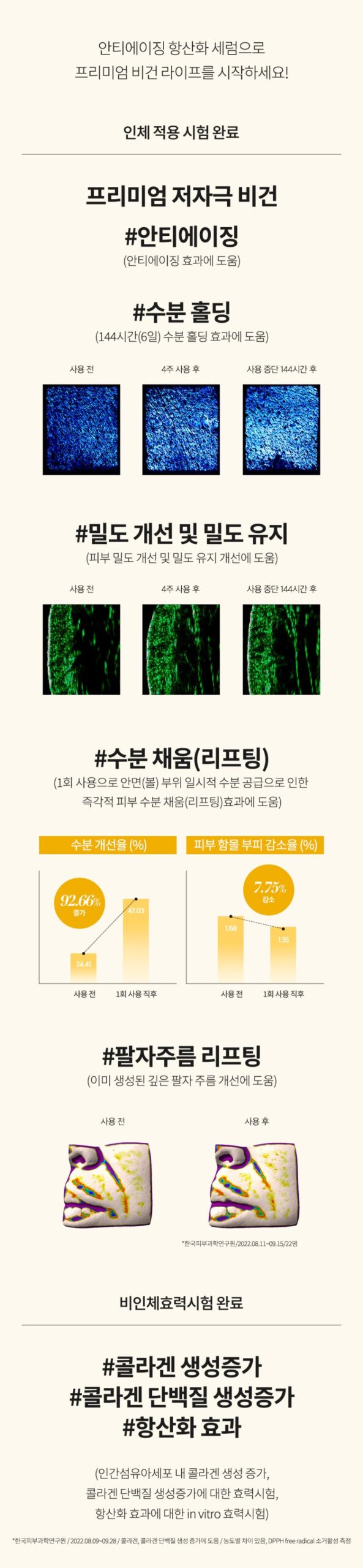 Completed 11 human application tests and collagen protein increase, antioxidant effect, and in-vitro efficacy tests.