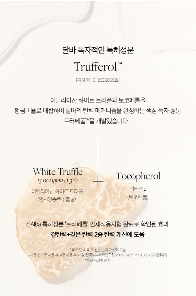 By combining Italian white truffles and tocopherol in the golden ratio, we developed Trufferol™, a key proprietary ingredient that completes d’Alba’s elasticity mechanism.