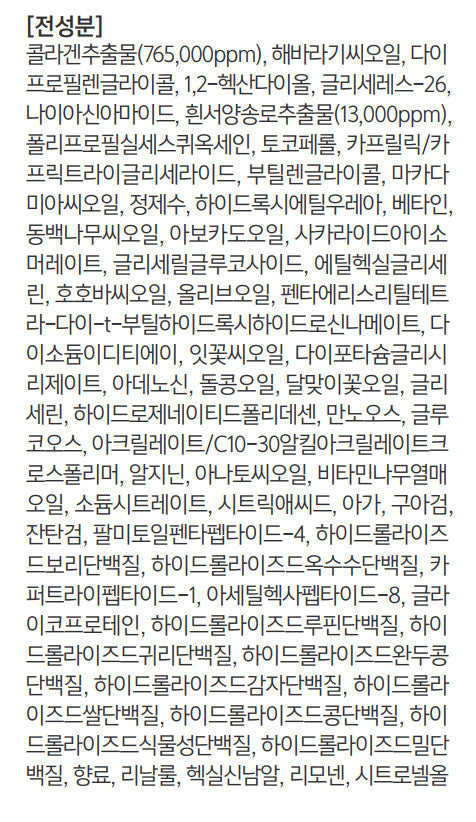 * Peptide elastic capsules keep the skin fresh by coating the peptides with plant-based ingredients and fully deliver stabilized effective ingredients to the skin.