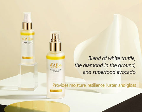 Hydrating and moisturizing dual mist serum provides rich moisture and nutrition of white truffle extract and avocado oil, providing oil and moisture balance care.