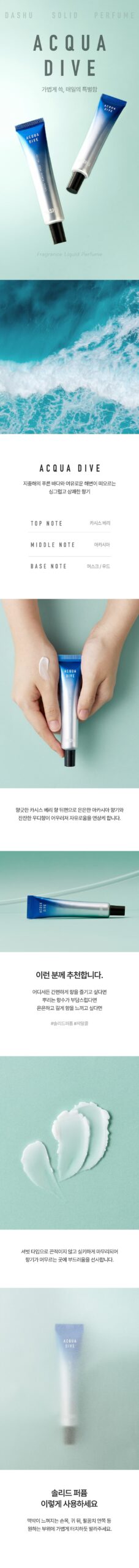 Experience the invigorating essence of the Mediterranean with DASHU ACQUA DIVE Solid Perfume. Inspired by the crystal-clear blue waters and serene beaches, this fragrance delivers a refreshing and uplifting scent that lingers effortlessly.