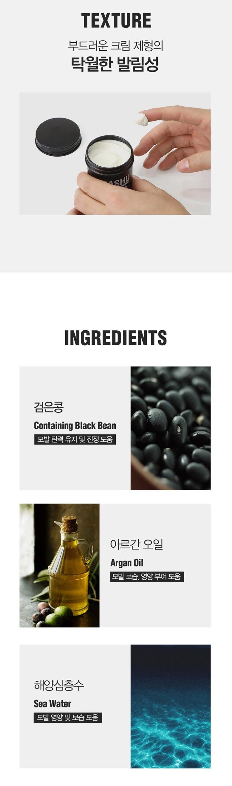Containing Black Bean : Helps maintain hair elasticity and soothe