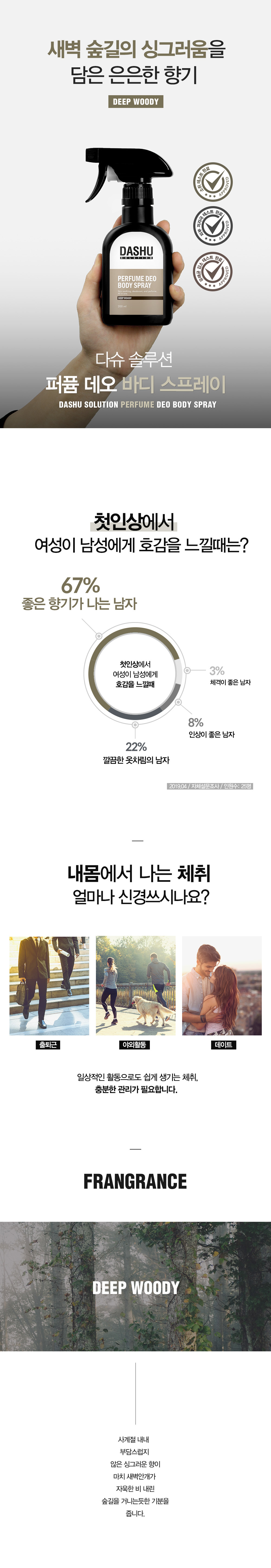 DASHU Solution Deo Body Spray Deep Woody — for freshness that lasts.