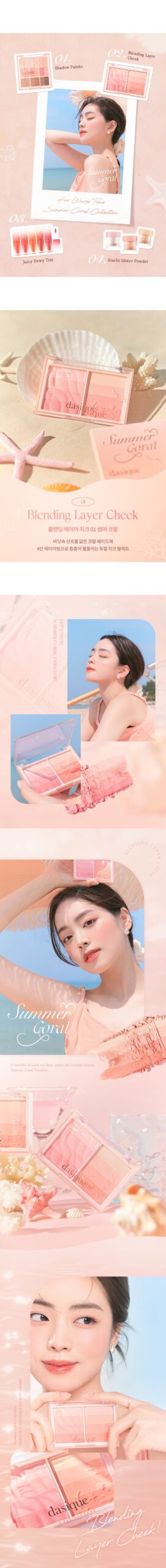 Experience the vibrant vitality of coral with our innovative Blending Layer Cheek palette. This palette features eight shades of coral, inspired by the stunning hues found beneath the ocean’s surface. Crafted to blend seamlessly, each color offers the opportunity to create a dynamic, lively complexion that mimics the natural beauty of coral.