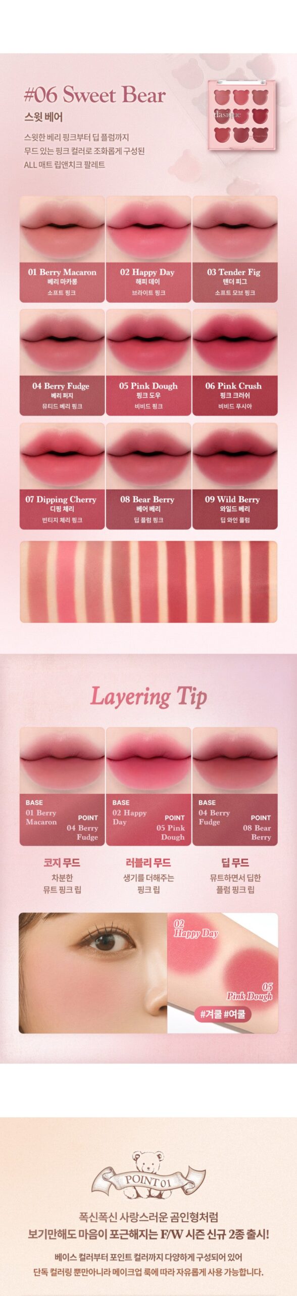 Choose the texture and shade combination based on your desired area of use. Whether for a bold lip, a natural blush, or a cohesive makeup look, this palette adapts to your preferences effortlessly.