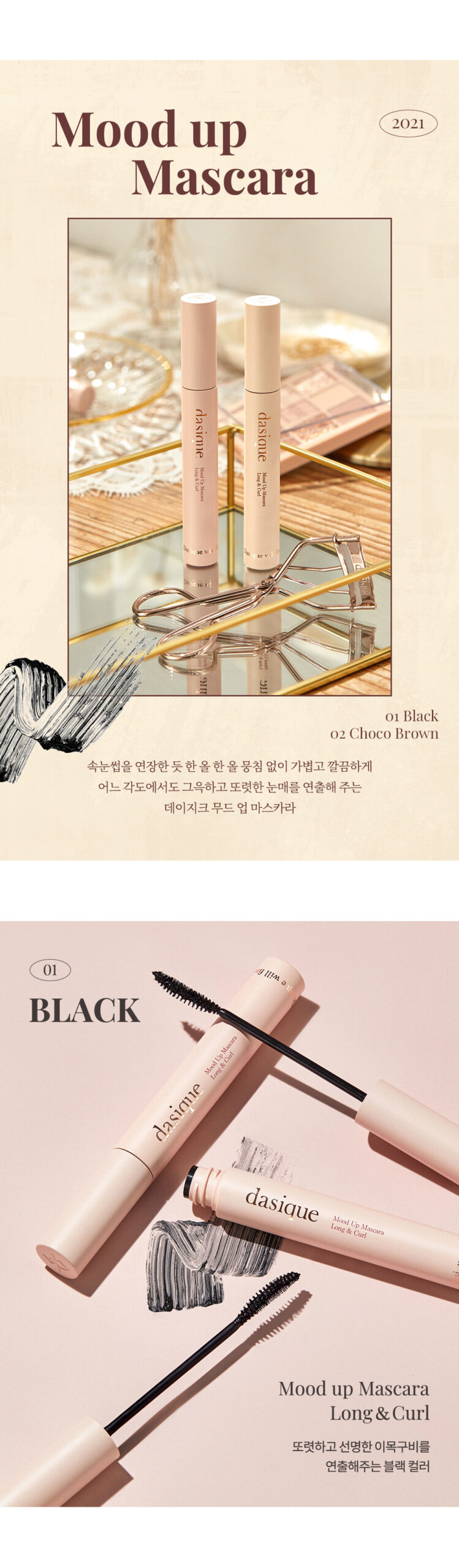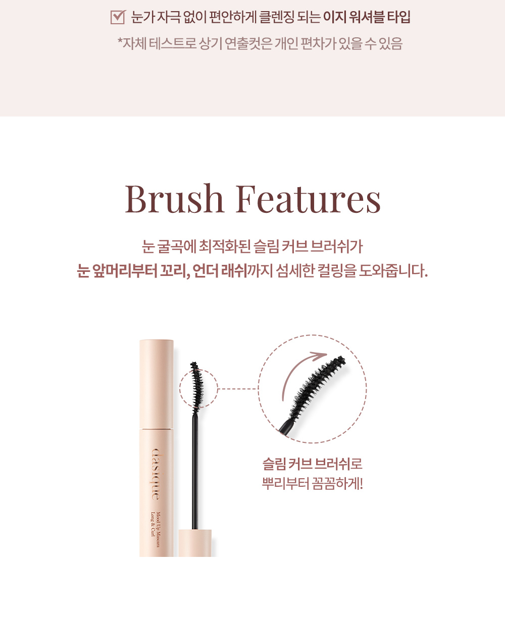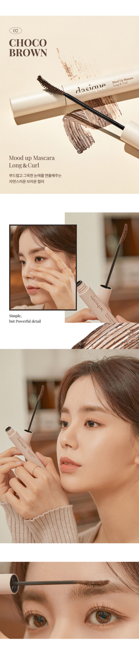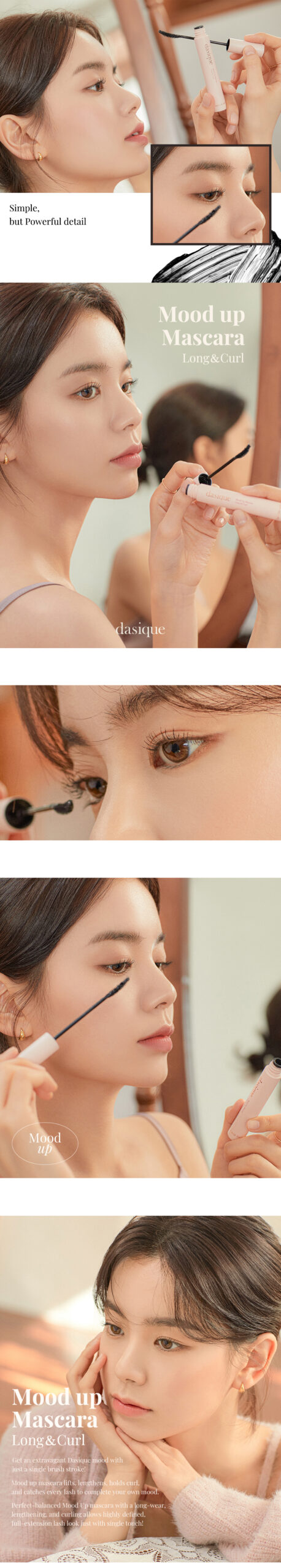 Dasique Mood Up Mascara that creates a deep and clear eye from any angle without clumping, as if extending eyebrows.