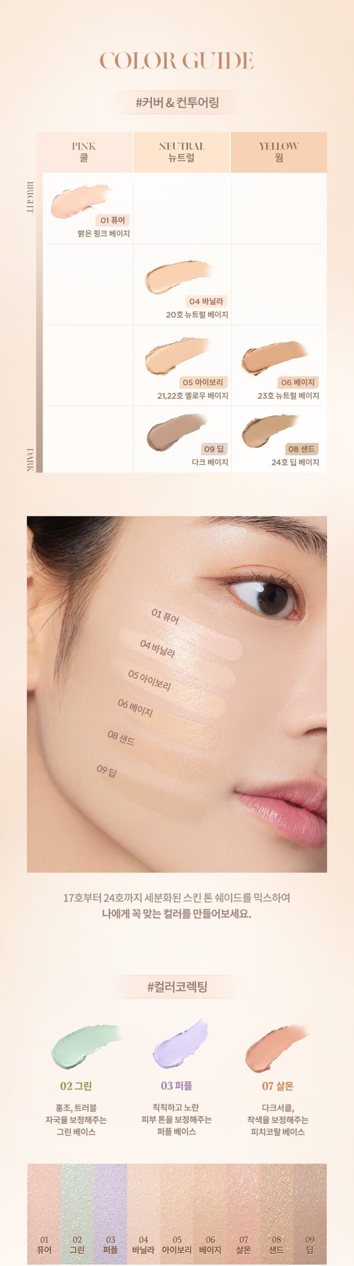 9 cover shades considering various skin tones and brightness