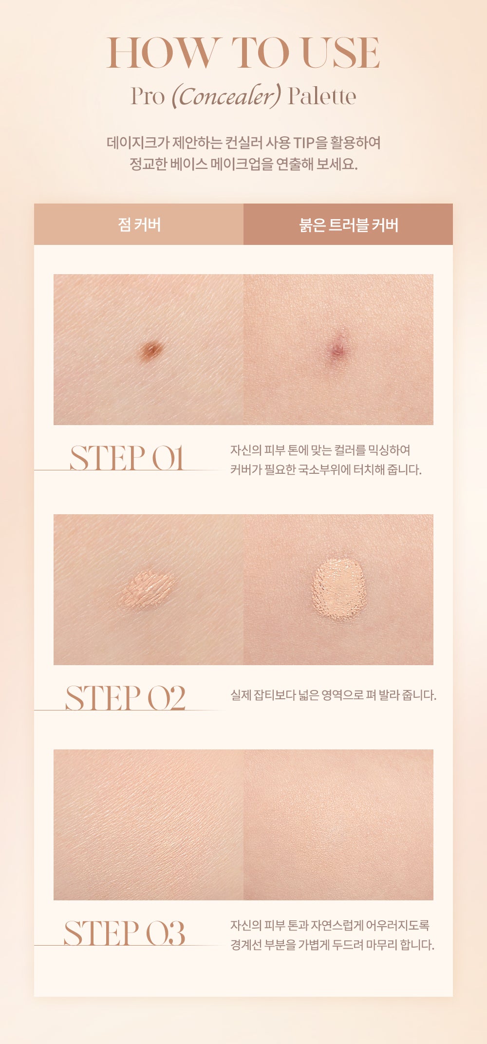 Mix the color that matches your skin tone and touch it to the area that needs coverage.– STEP 02