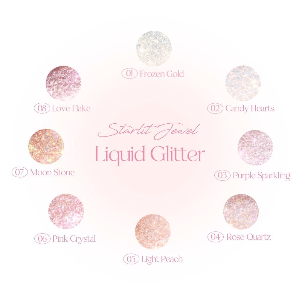 * A jewel liquid glitter that is made up of delicate pearls and brilliant glitter parts that are fixed closely and transparently, giving a gorgeous jewel glow according to the movement of light.