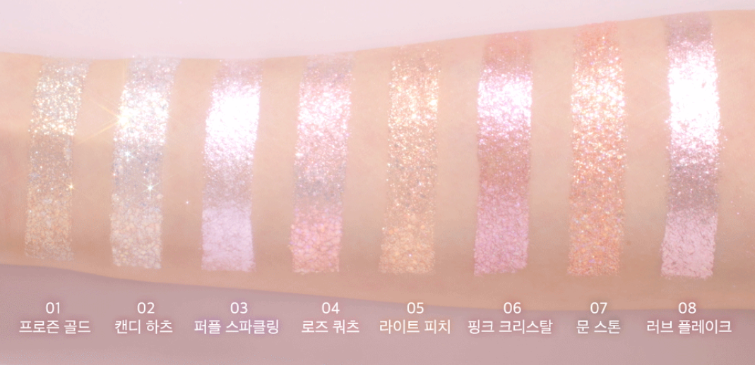 The soft and detailed silicone type brush allows for detailed glitter control on the eyelids and eyelids.