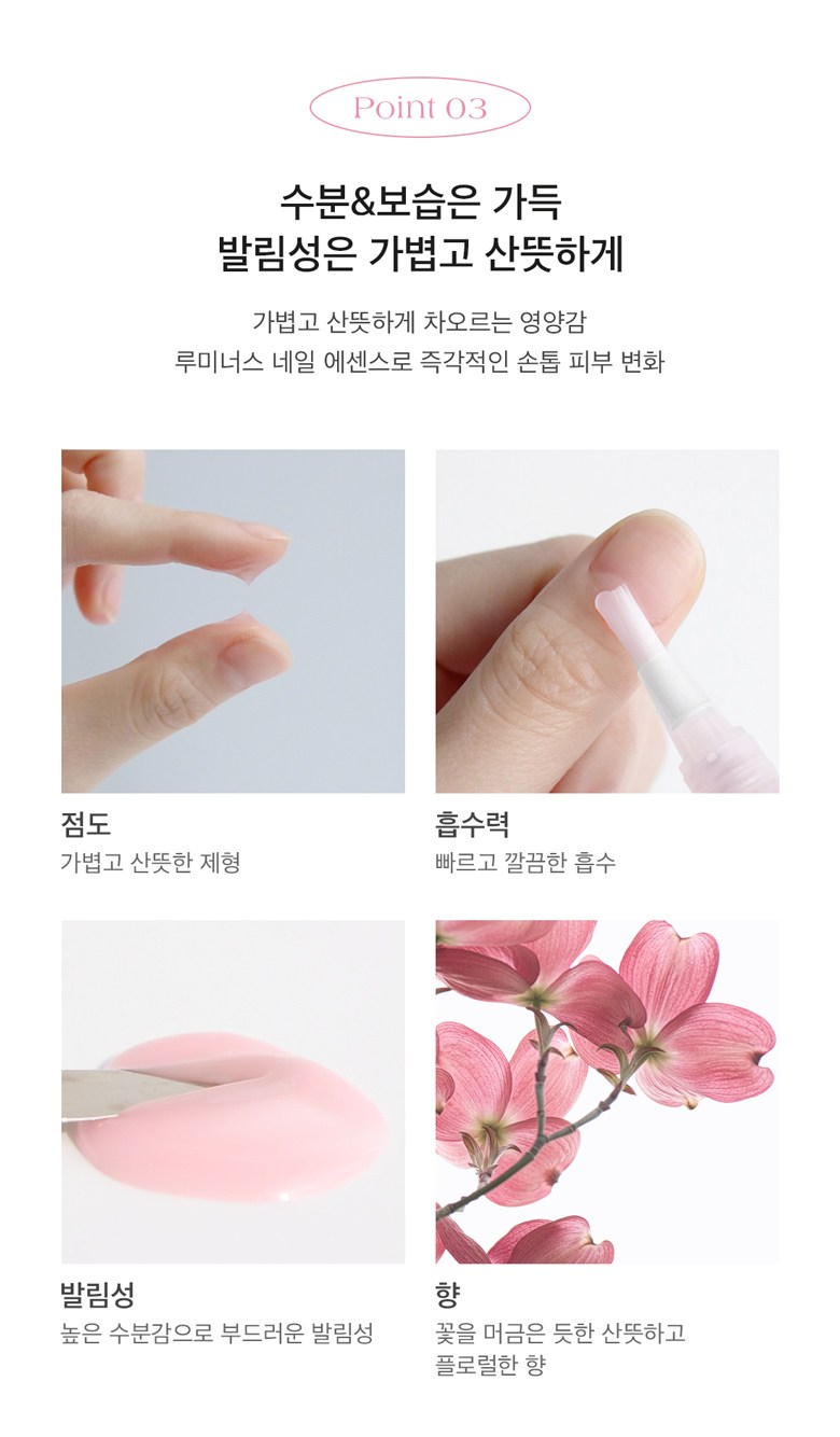 Say goodbye to brittle nails and ragged cuticles. The Dear.A Luminous Nail Essence is your ultimate solution for comprehensive nail and cuticle care. Crafted with a lightweight, non-sticky formula, this essence absorbs quickly, leaving behind a delicate, fresh floral scent and a healthy glow, not a greasy residue.