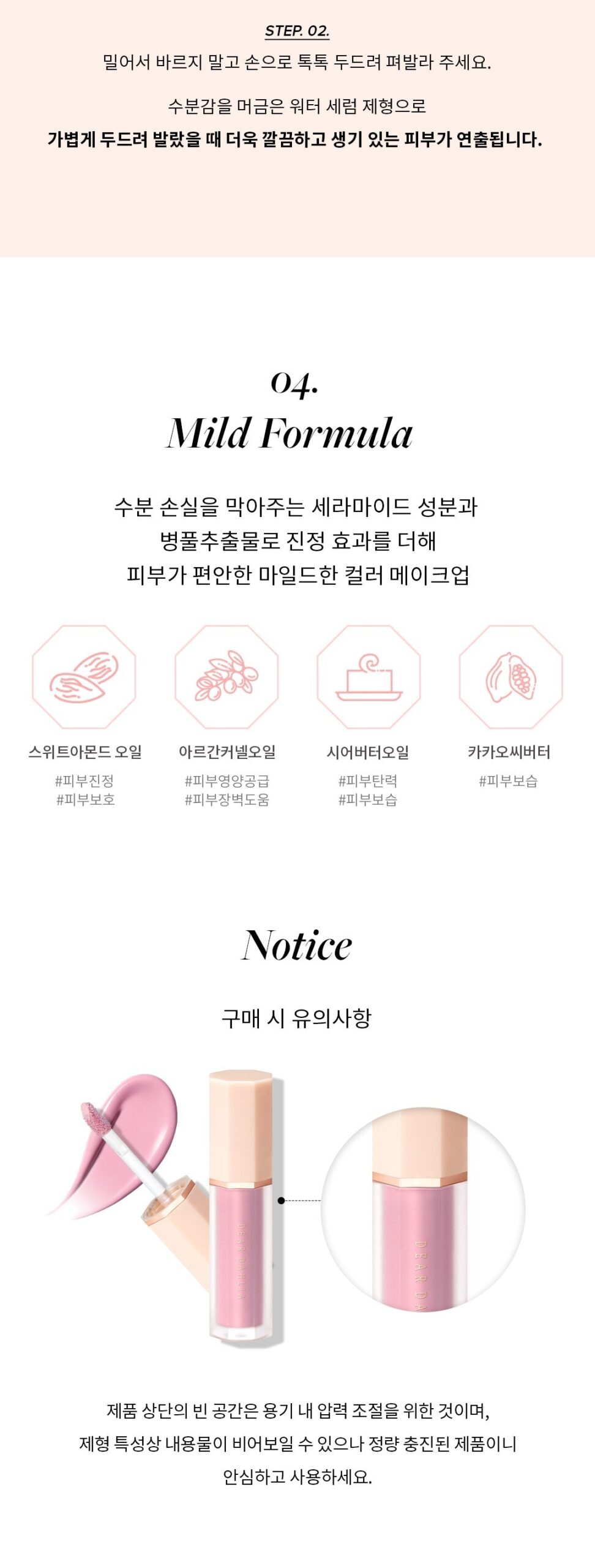 * A liquid blush that gives a transparent vitality like moist flower petals staining your cheeks.