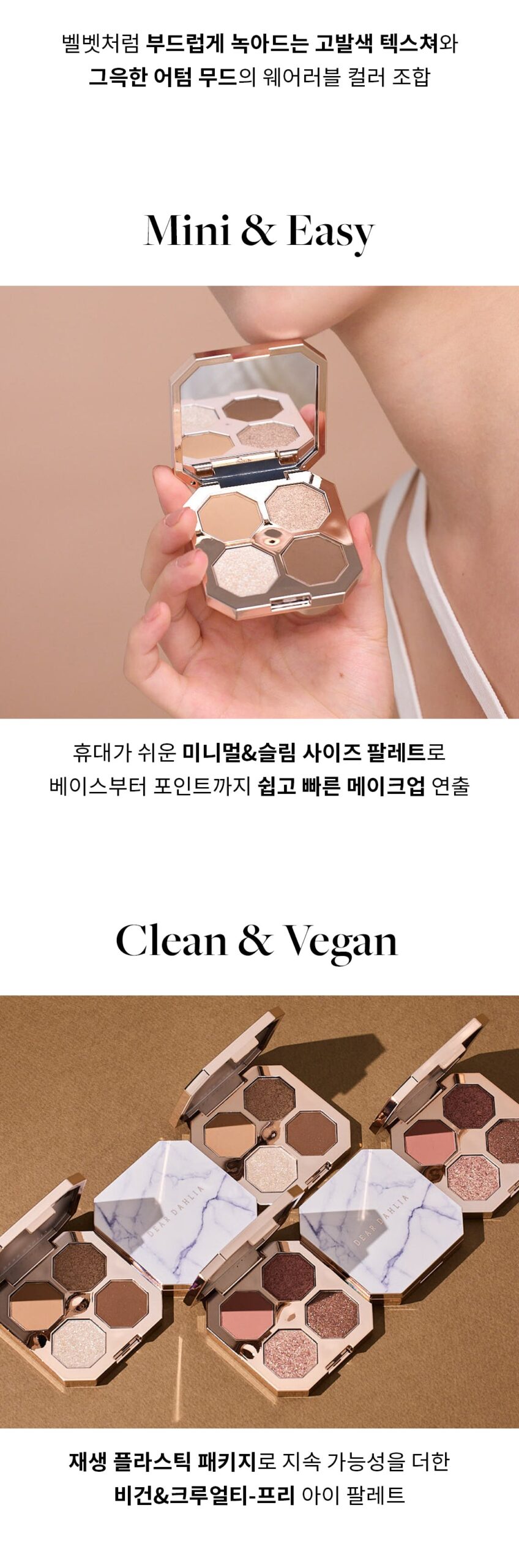 Easy and quick makeup creation from base to point with an easy-to-carry, minimal and slim-sized palette.