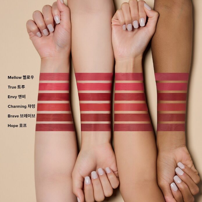 * Soft MLBB matte lip with a soft airy velvet texture and clear color
