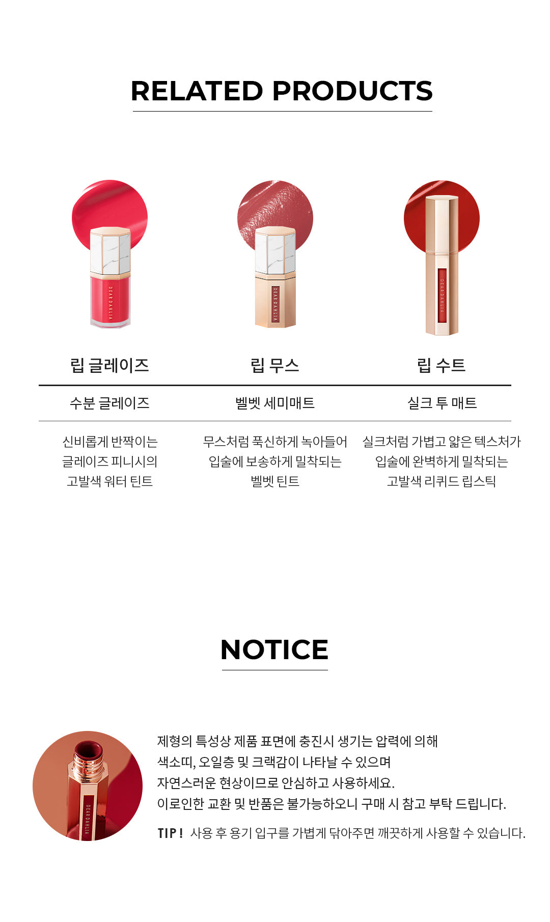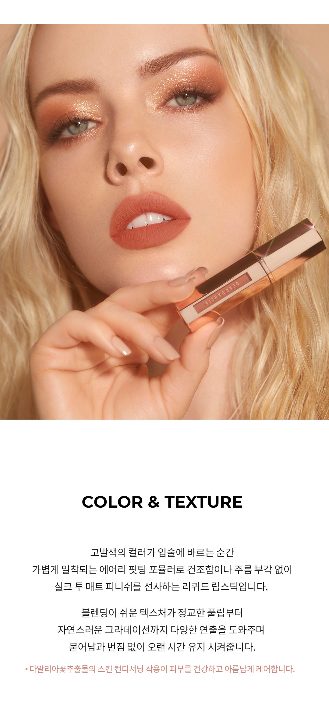 This liquid lipstick has a highly pigmented air-refitting formula that adheres lightly to the lips the moment you apply it, giving a silk-to-matte finish without drying out or highlighting wrinkles. From full lips to sophisticated, easy-to-blend textures