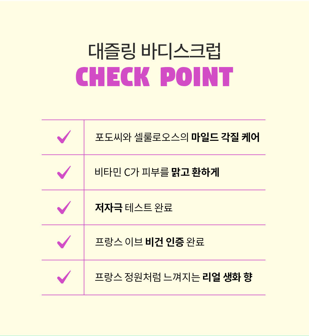 For a brightening effect, the scrub contains smooth grape seed powder that exfoliates rough skin, while moisturizing cellulose works to instantly brighten dull, tired skin. Clinically proven to enhance skin tone, uniformity, and keratinization, this tone-up scrub is gentle enough for those with sensitive skin. The bubbly gommage texture provides pain-free exfoliation with no irritation. Developed with a French global perfumer, it offers a luxurious, fresh floral fragrance that feels light yet sophisticated. It has also passed low skin irritation tests, ensuring it’s safe for all skin types.