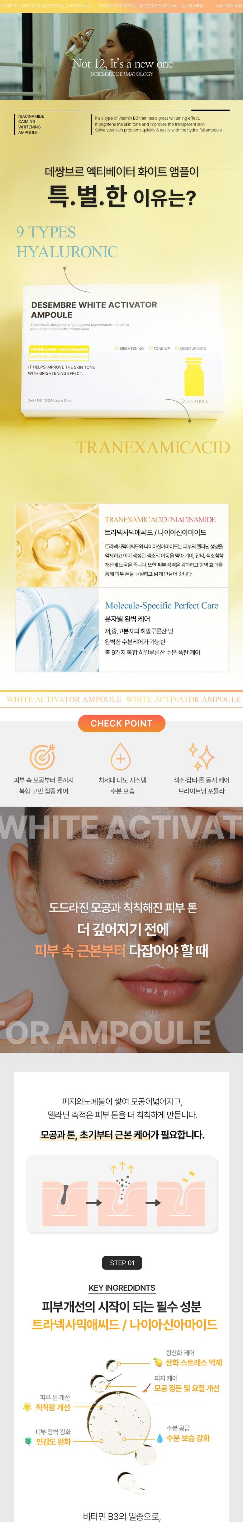 Premium Korean whitening ampoule from Decembre, a professional skincare brand trusted by dermatologists. This functional cosmetic is certified for whitening benefits.