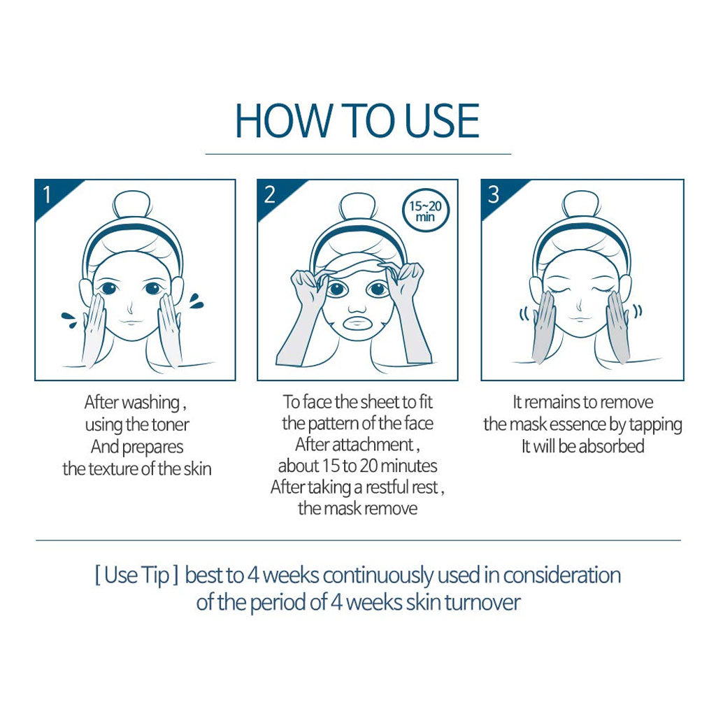 - Remove mask and discard. Pat skin lightly to absorb the remaining essence into the skin.