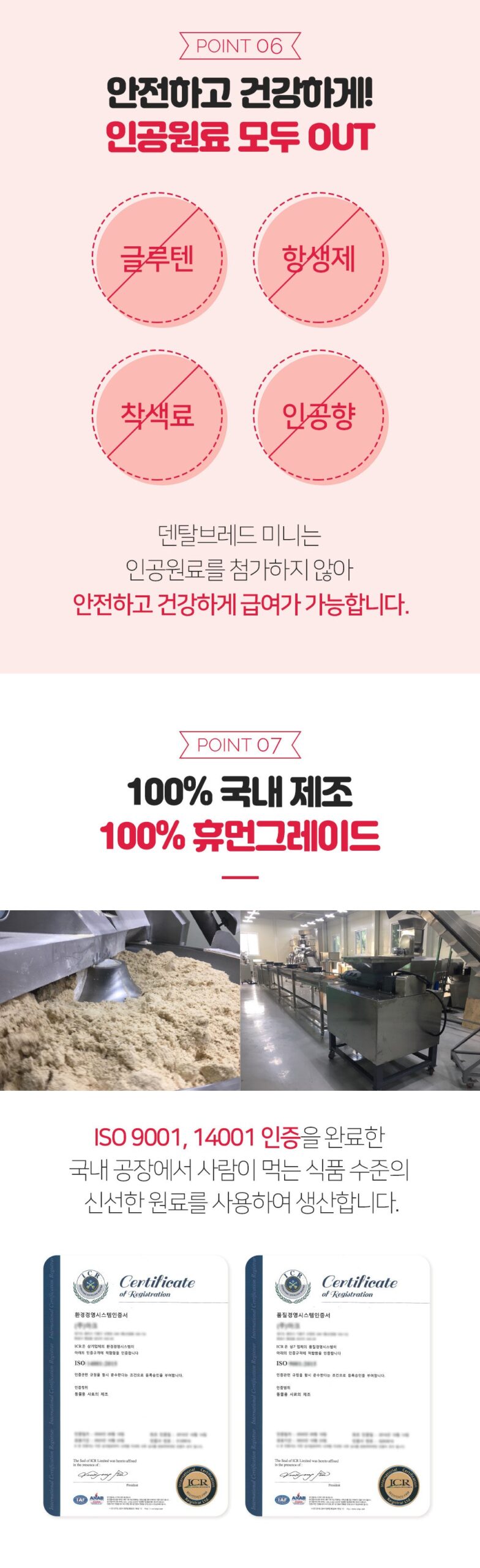 Produced using human-food-grade fresh raw materials in a domestic factory that has completed ISO9001, 14001 certification.