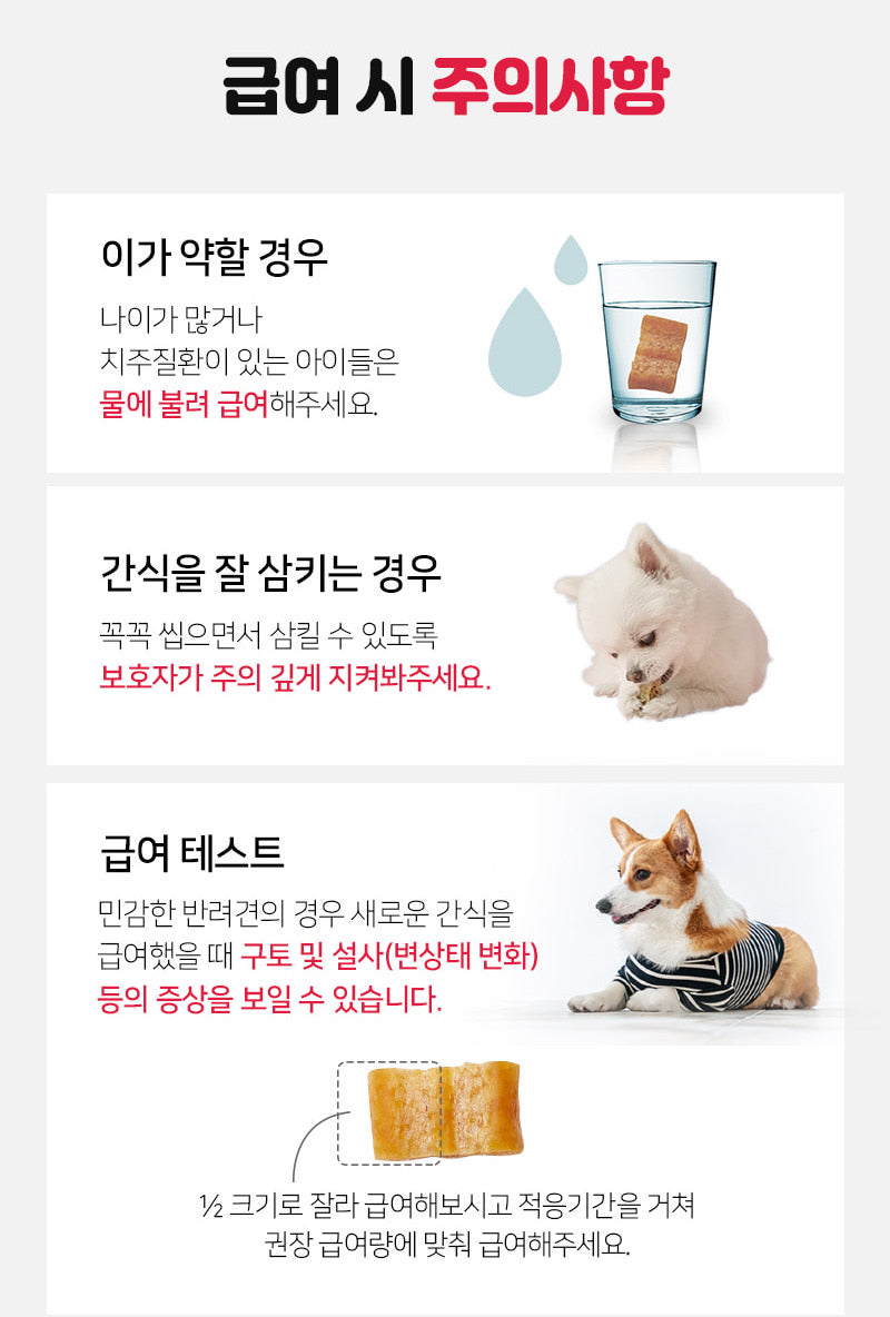 -In the case of dogs who have weak teeth and cannot chew well, only saliva may be secreted and the product may stick to the roof of the mouth in a lumpy state. I