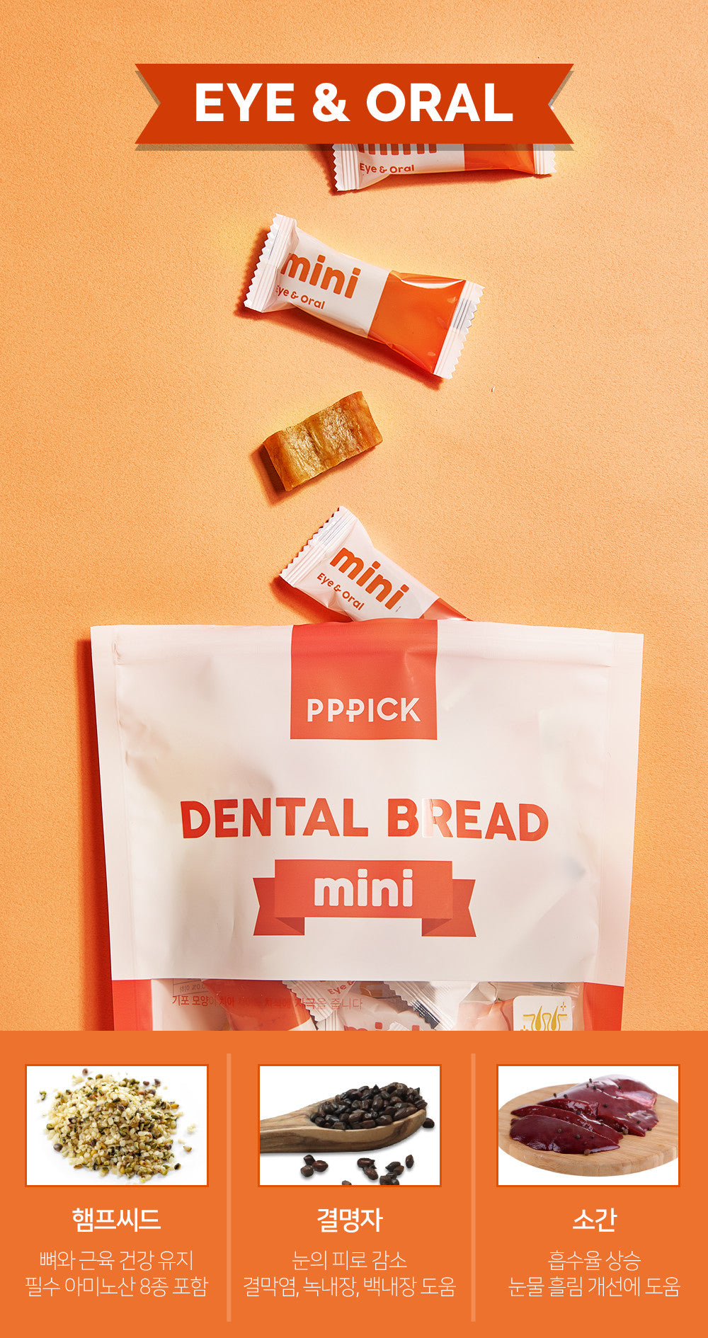 Dental bread can be seen as a dark dot of the ‘bean liver’ ingredient contained in eye health. Beef liver is an effective ingredient for improving dog tears and tear marks, so you can feed it with confidence.