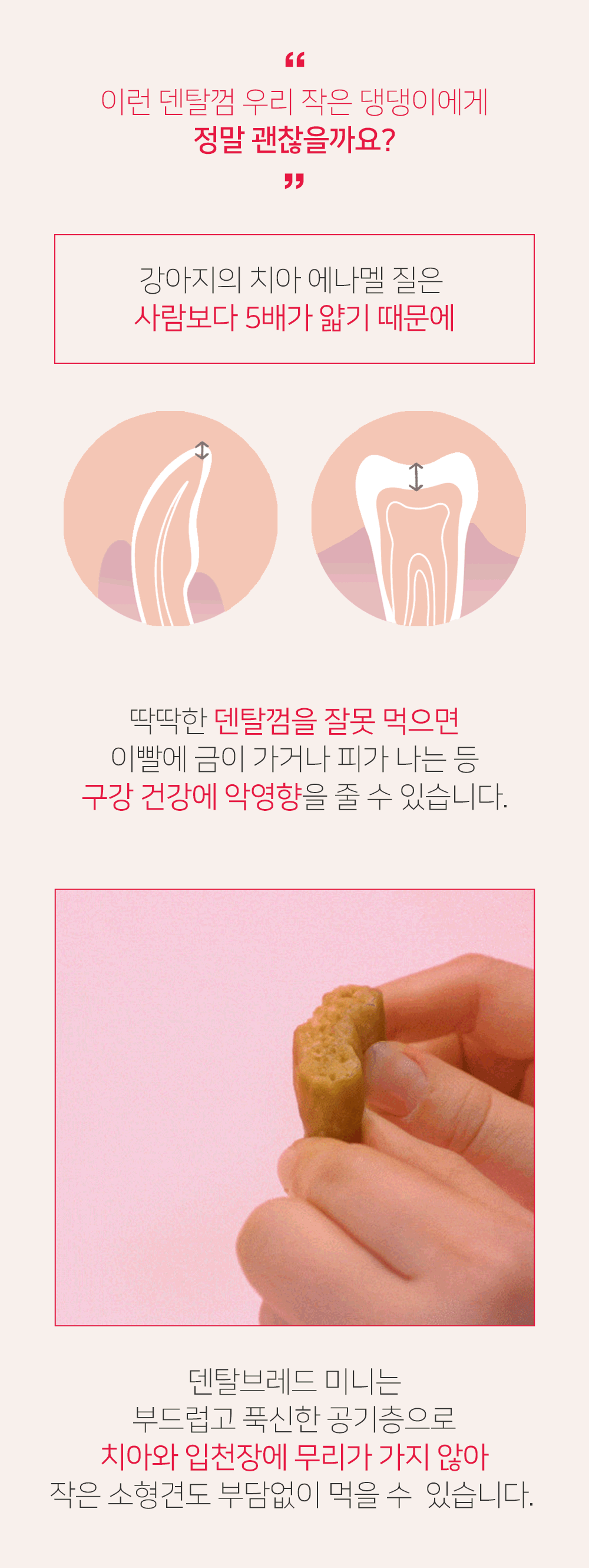 So, Dental Bread has a layer of air in the middle for easy tartar removal. Numerous sections of the air layer stimulate between the gums and teeth like a sponge, helping to remove tartar down to the deep grooves of the molars.