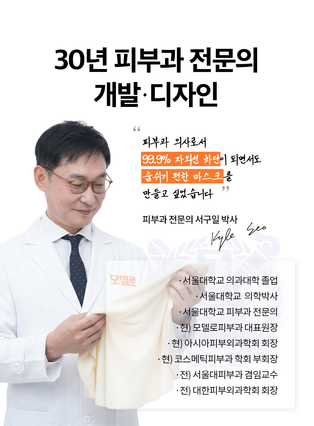 With an impressive background, Dr. Seo-gil Seo, a graduate of the Seoul National University School of Medicine, has utilized his 20 years of experience to innovate a mask that ensures excellent UV protection and breathability. He currently serves as an adjunct professor of dermatology at Seoul National University College of Medicine and is the president of the Korean Society of Dermatologic Surgery.