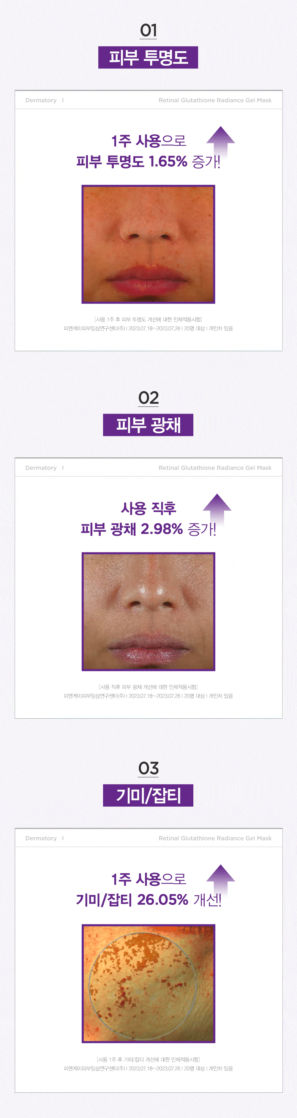 Transparent Gel Composition: Crafted by combining the essence of retinal and glutathione, this gel mask stands out with its clear, jelly-like consistency, ensuring a seamless and comfortable application.