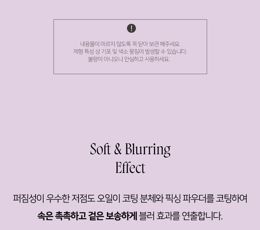 A velvety jelly texture combining gel oil and powder for a light yet breathable finish, leaving a soft, blurred look without clogging pores.