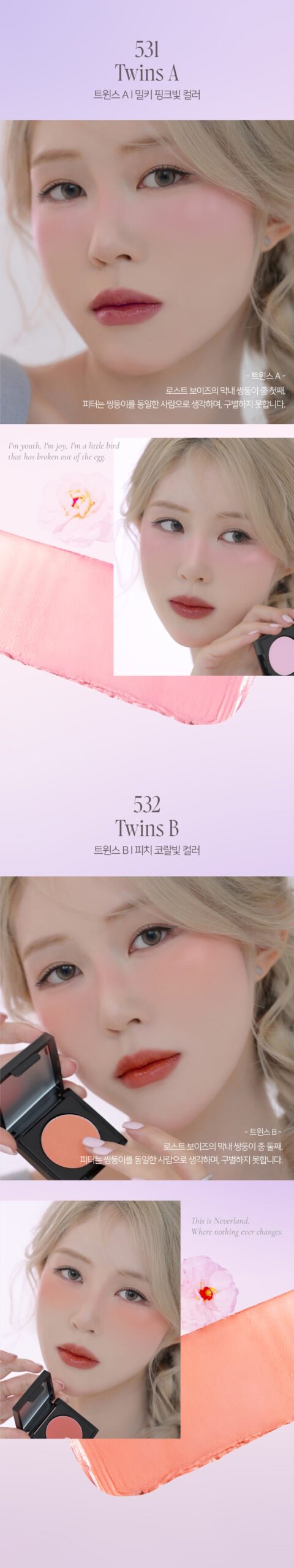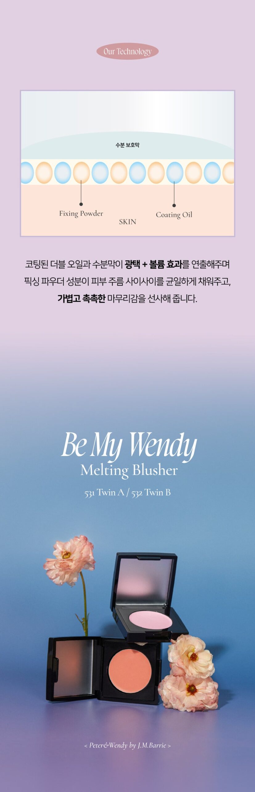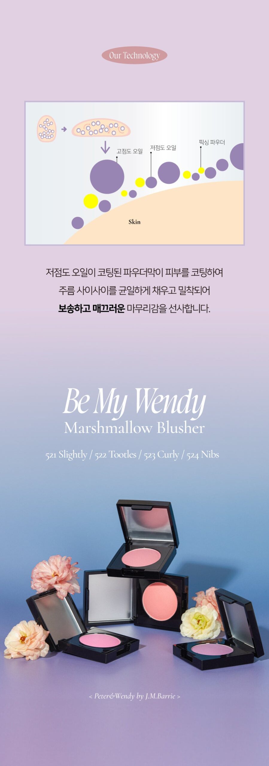 Experience the enchanting colors of the Be My Wendy Blusher collection and enjoy a soft, long-lasting flush inspired by Wendy’s tender care for the lost boys. Choose Marshmallow for a silky matte finish or Melting for a glossy, radiant glow that lasts all day.