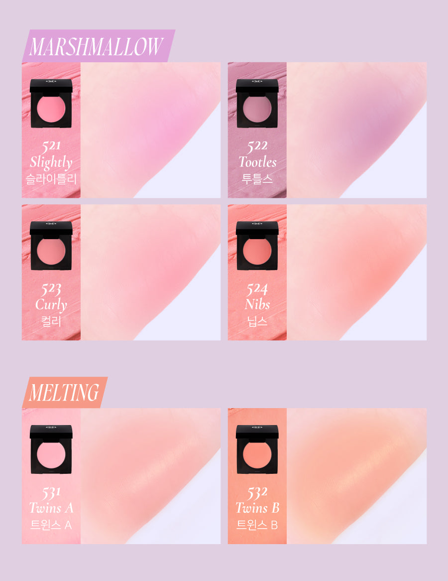 Create a gentle, baby-like flush with the Marshmallow Blusher. Featuring a unique marshmallow texture, it offers a soft, matte finish that appears airy on the skin, blending seamlessly for a blurred look.