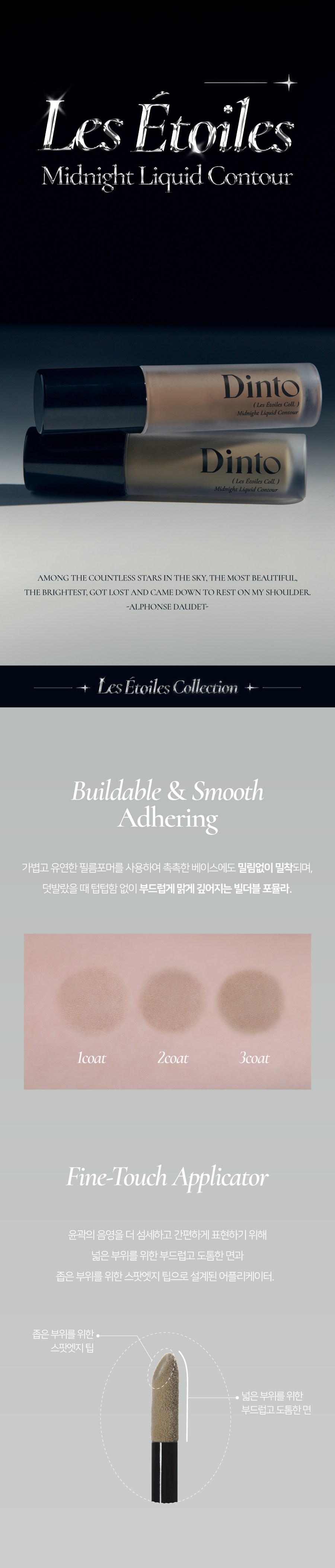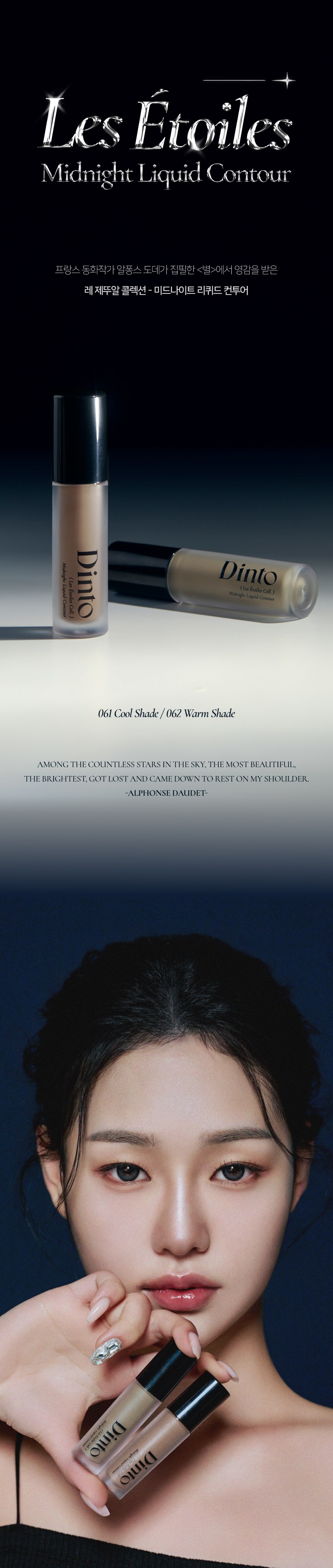 Journey into the poetic world of Alphonse Daudet’s “Les Étoiles” (The Stars), the profound inspiration behind Dinto’s exquisite Les Étoiles Collection. Just as the stars illuminate the night sky, our Midnight Liquid Contour subtly sculpts your face, casting natural shadows that define and empower your unique beauty. As Alphonse Daudet beautifully penned, “AMONG THE COUNTLESS STARS IN THE SKY, THE MOST BEAUTIFUL—THE BRIGHTEST, GOT LOST AND CAME TO REST ON MY SHOULDER.” Let Dinto be the star that rests on your skin, crafting a look that is both natural and captivating.