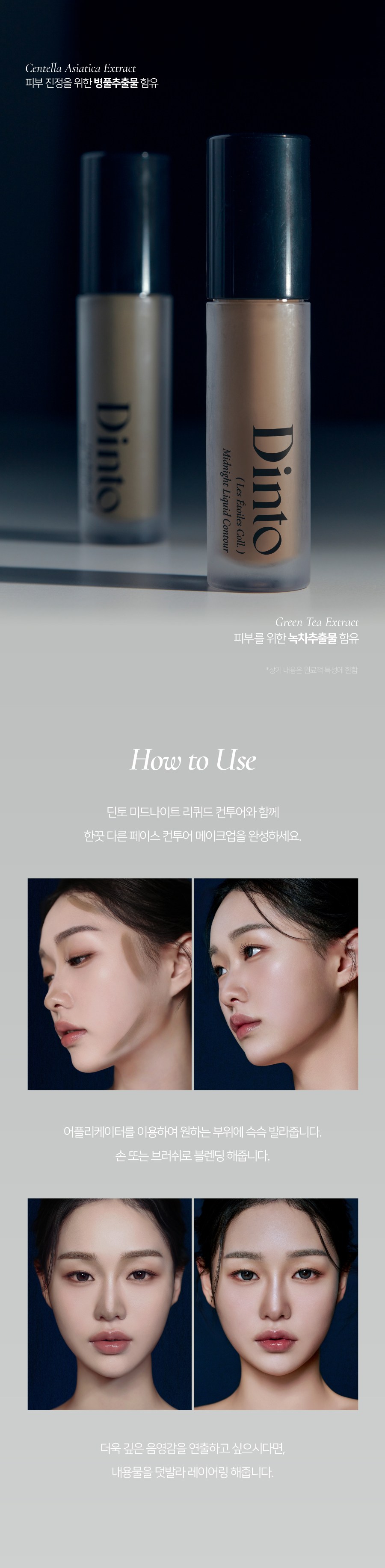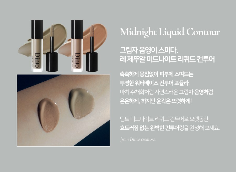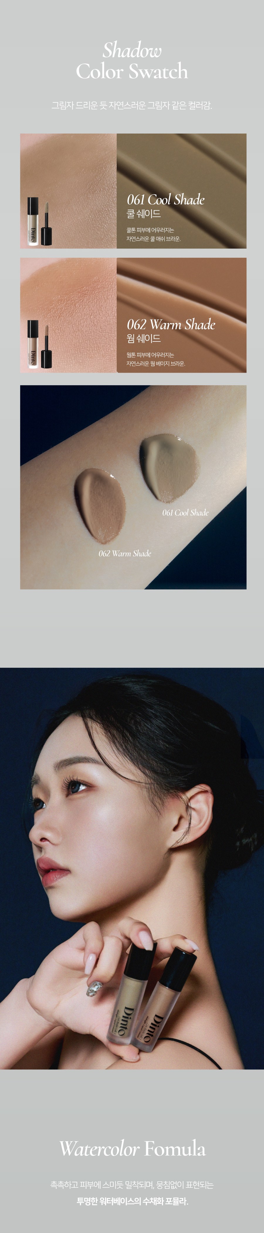 Experience contouring like never before with Dinto’s innovative watercolor-inspired formula. This transparent, water-based liquid contour glides onto your skin with a moist touch, adhering flawlessly without clumping. It builds up thinly and deeply, allowing you to create a customized shadow effect that looks incredibly natural.