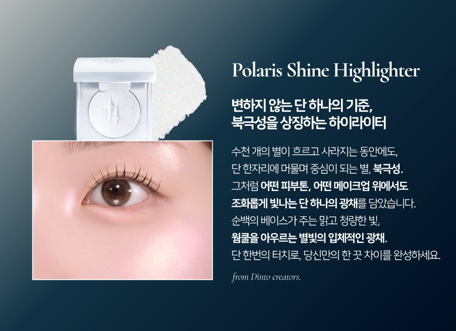 Discover the celestial glow of the Dinto Polaris Shine Highlighter, inspired by the steadfast brilliance of the North Star. This exquisite highlighter delivers a pure, three-dimensional radiance, transforming your complexion with a captivating shimmer that’s truly out of this world. Embrace the light that remains constant, just like the guiding star in the night sky.