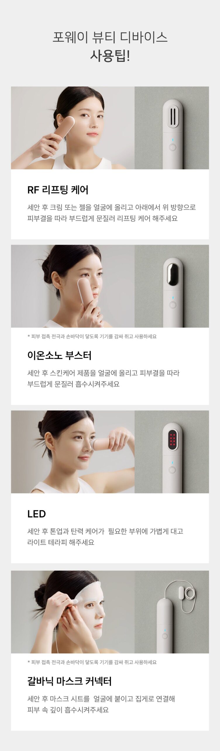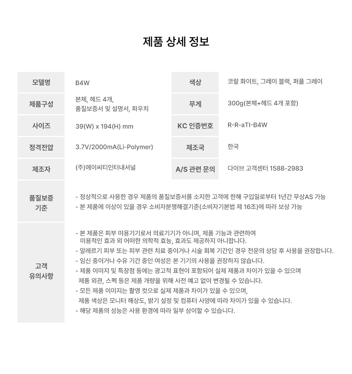 The DIVE 4-way Beauty Device features a patented system for easily swapping heads using a one-touch magnetic attachment, offering ultimate convenience in your skincare routine. This patented technology also includes the first-of-its-kind mask connector in Korea.