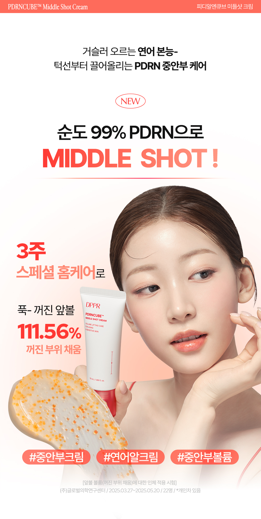 DPPR PDRNCUBE Middle Shot Cream is more than a moisturizer — it’s a 3-week skin transformation system. With its silky, high-performance texture and advanced biotech ingredients, it targets mid-face sagging, smile lines, and loss of firmness, delivering a visibly lifted and youthful appearance.