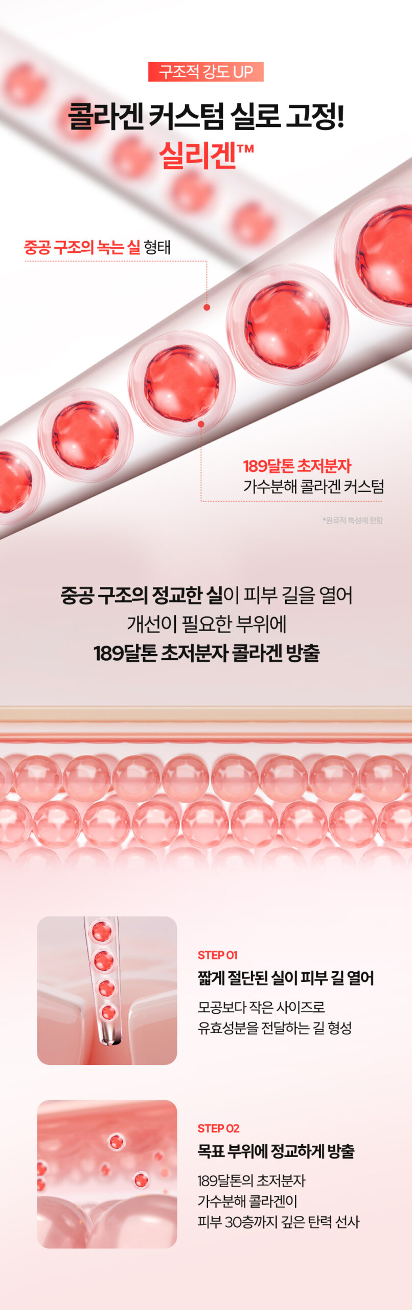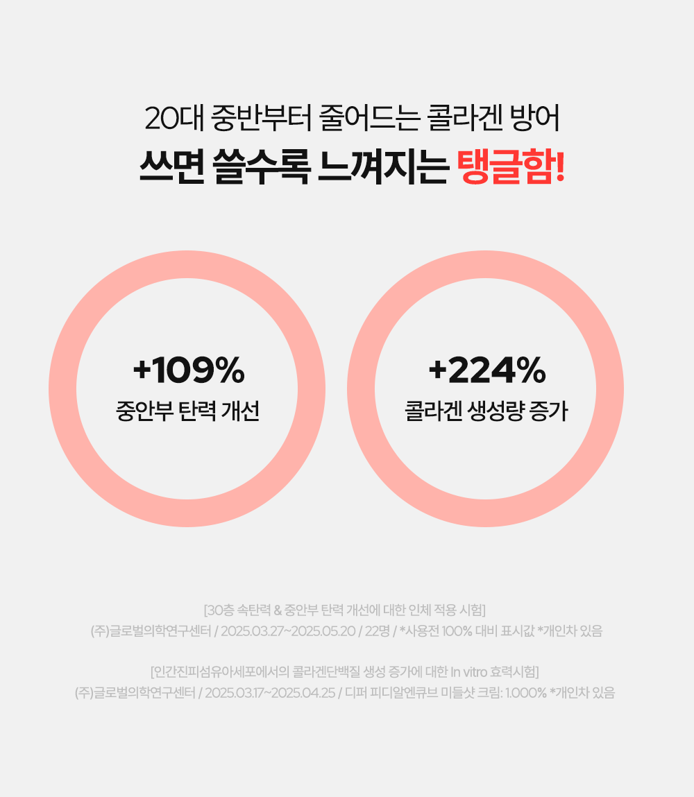 A blend of high-, medium-, and low-molecular collagen ensures multi-layered skin support for firm, resilient texture.