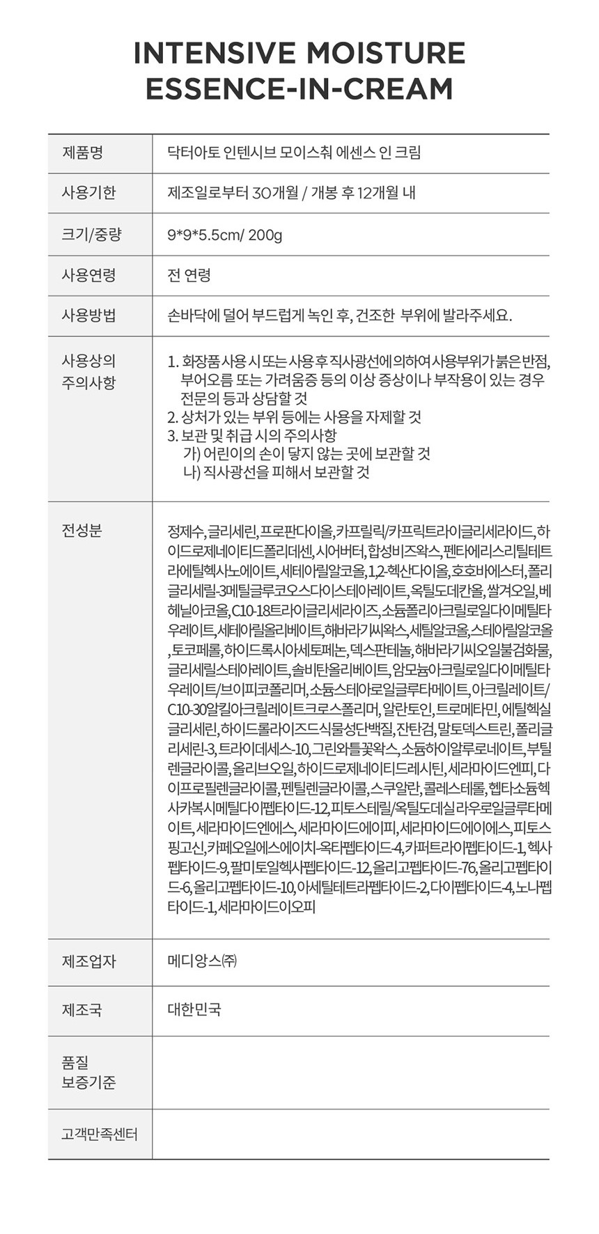 Your skin’s safety is our priority. Dr.ato Intensive Moisture Essence in Cream is: