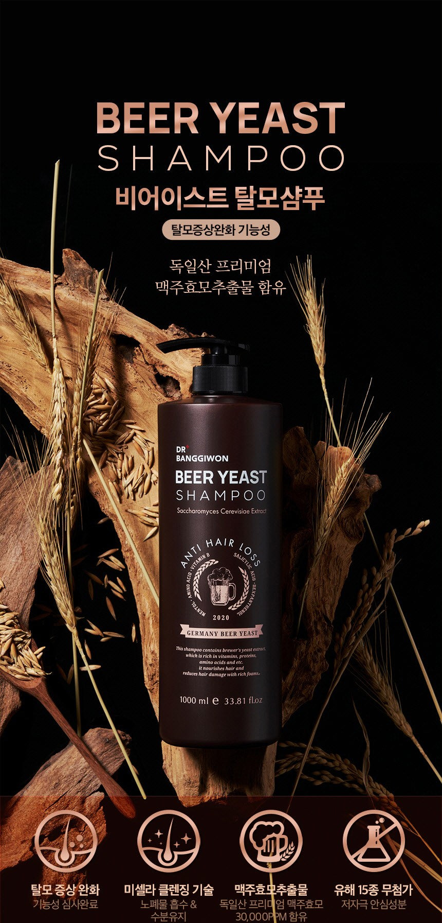Dr. Bang Kiwon Beer Yeast Shampoo is more special as it contains 30,000PPM of German premium brewer’s yeast extract.