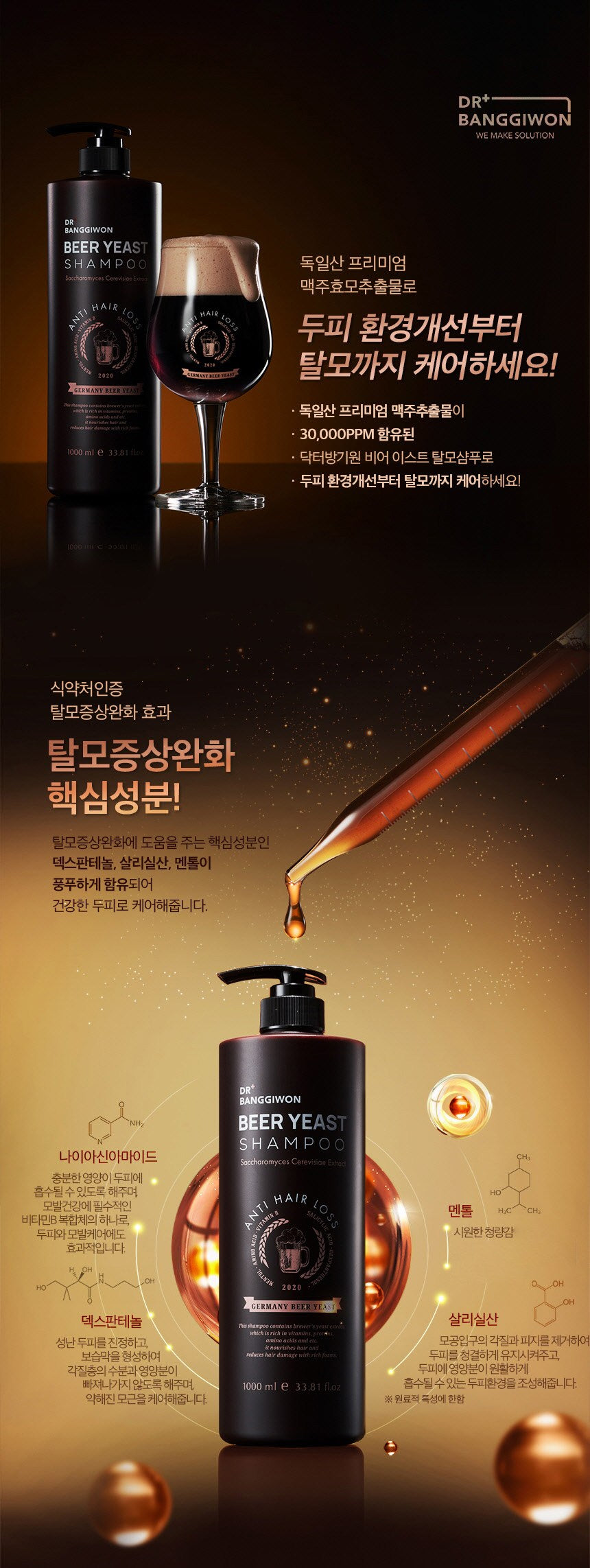 The hair loss relief effect of brewer’s yeast, which was revealed by focusing on the rich and shiny hair of workers who worked at beer factories in Germany! Experience the effect with Dr. Bang Ki-won Beer East Shampoo!