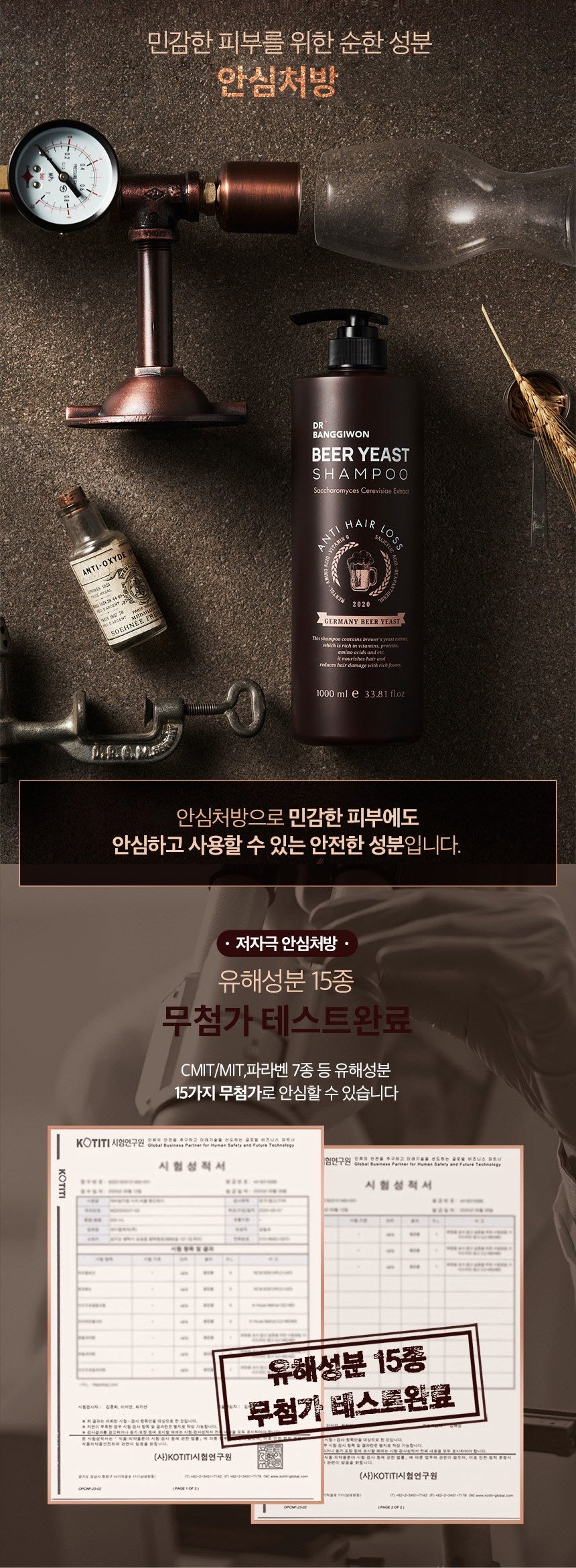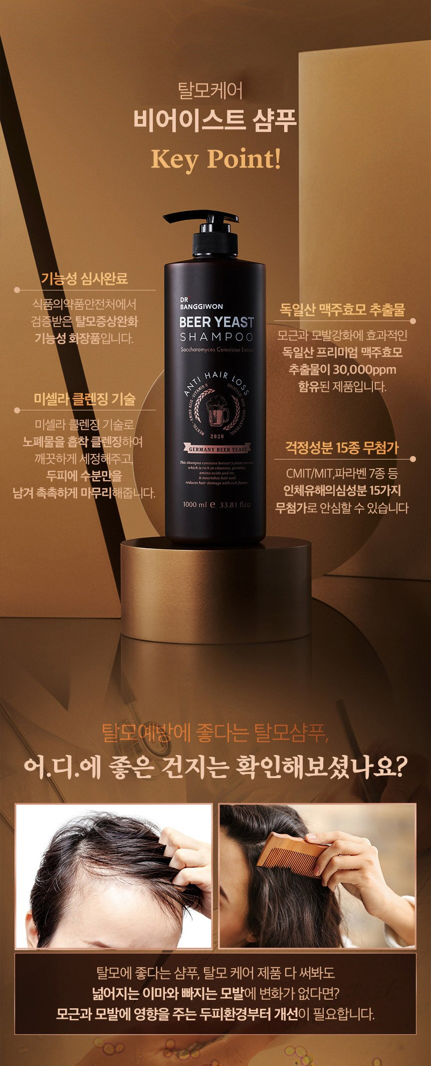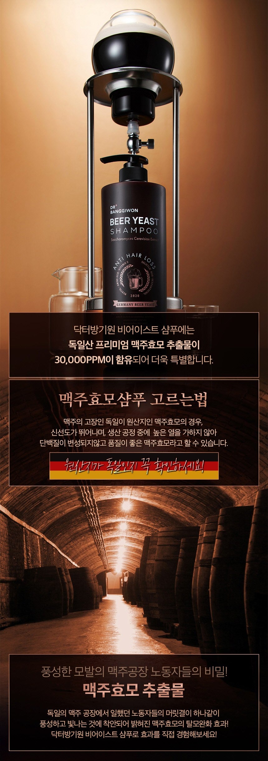 The hair loss relief effect of brewer’s yeast, which was revealed by focusing on the rich and shiny hair of workers who worked at beer factories in Germany! Experience the effect with Dr. Bang Ki-won Beer East Shampoo!