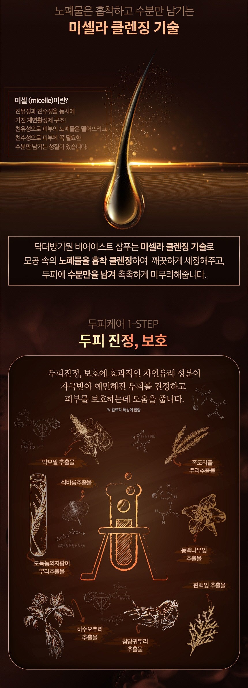 Dr. Bang Ki-Won Beer East Shampoo uses micellar cleansing technology to adsorb and cleanse impurities in pores, leaving only moisture on the scalp for a moist finish.