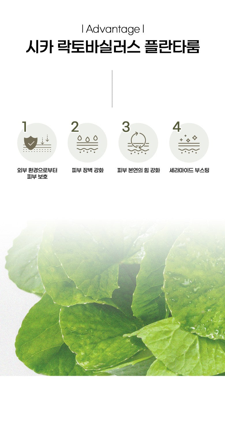 ‘Cica Lactobacillus Plantarum’ isolated from Centella Asiatica not only soothes the skin, but also helps strengthen the skin barrier to help keep the skin moist for a long time.