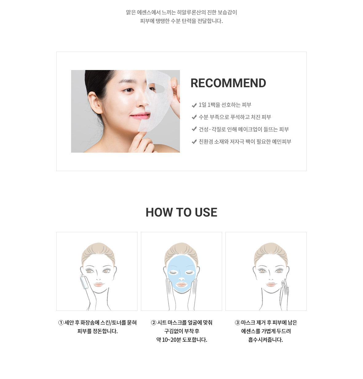 3. After removing the mask, lightly tap the remaining essence on the skin for absorption.