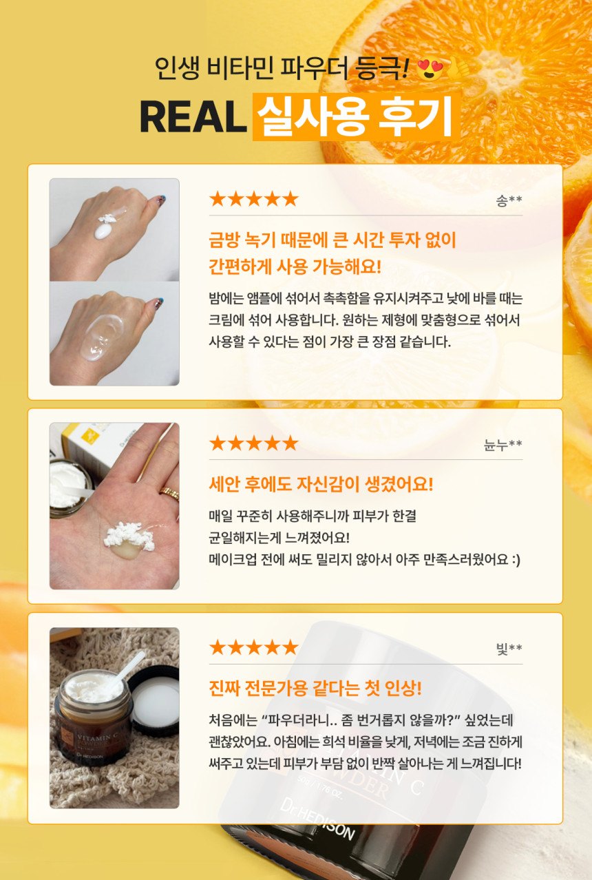 I’ve been using the Dr. HEDISON Vitamin C powder for a while now, and I’ve noticed a real difference in my skin’s radiance. It mixes easily with my serum and gives my complexion a brighter, more even tone. I especially appreciate how it helps to reduce the dullness I sometimes experience.