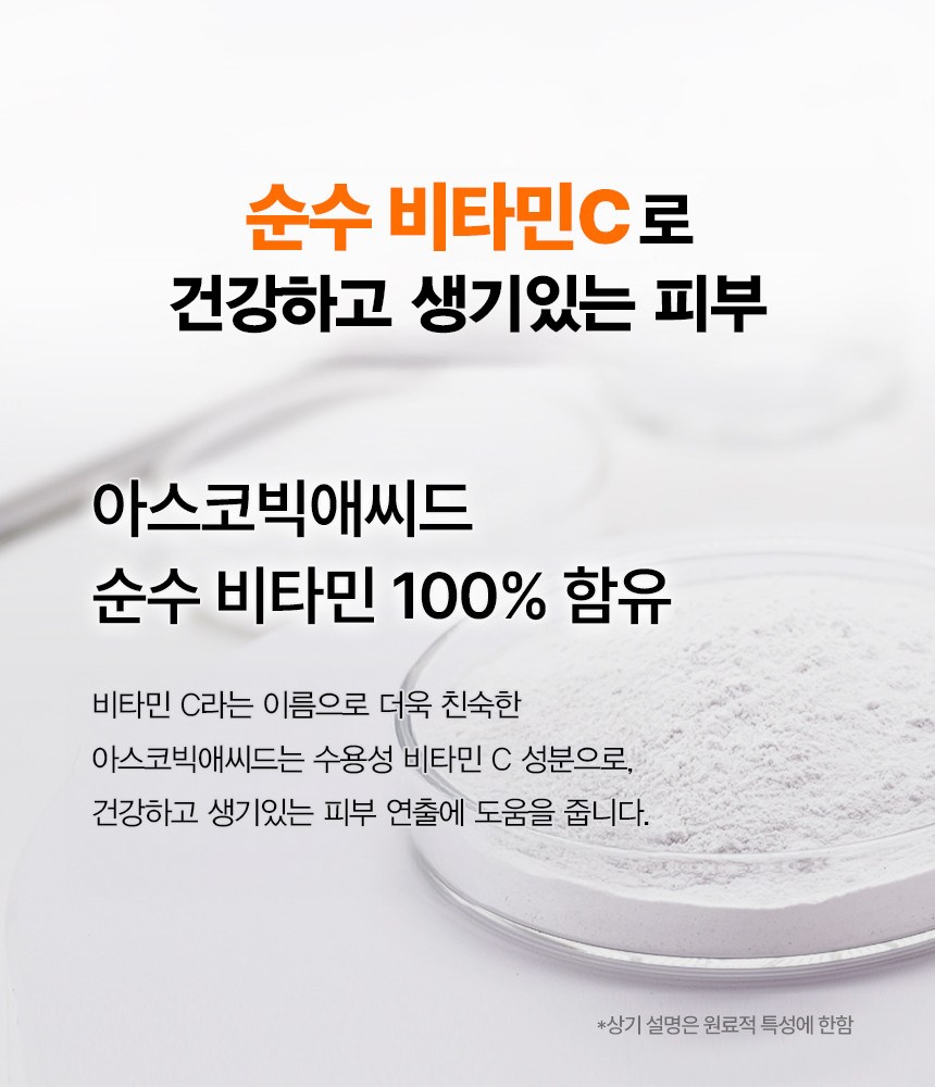 - Main Ingredient: 100% Pure Ascorbic Acid (Vitamin C)