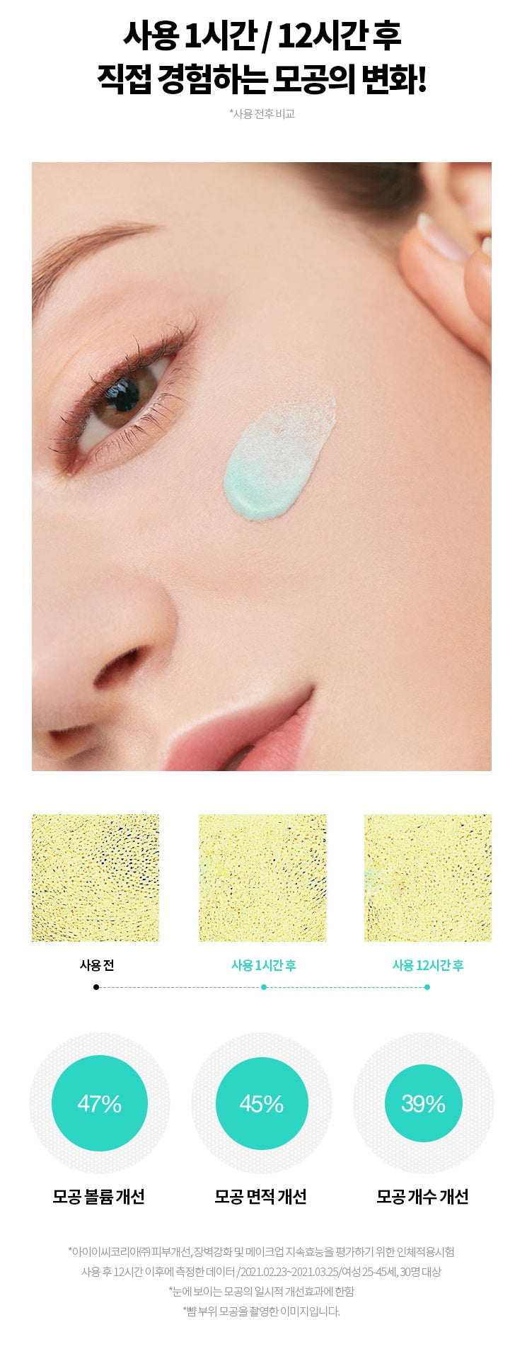 Skin pore improvement (reduction) test completed