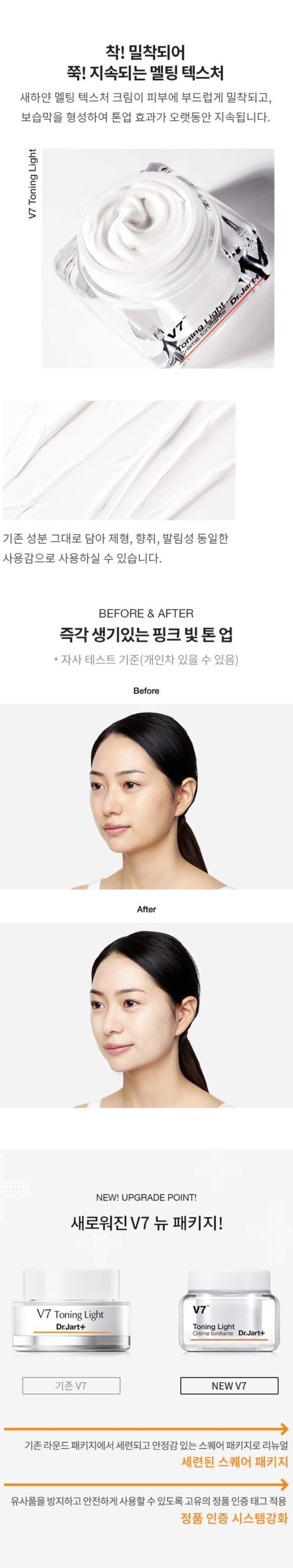 Unique V7 Vitamin Complex for a Lustrous, Moisturized Skin Dr.Jart+’s exclusive 7-vitamin complex not only brightens but also intensively moisturizes, promoting a healthy, glowing complexion.